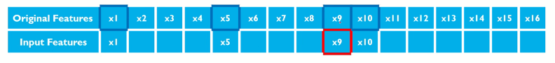 1. 원래 변수들 중에서 모델 구축에 쓰일 입력 변수를 무작위로 선택한다.