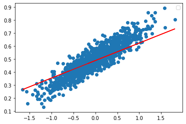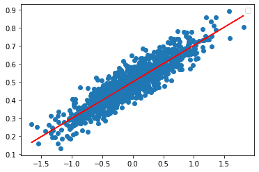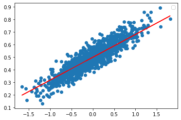 2. y = 0.2 * x + 0.5 관계를 가지는 데이터를 생성한다. np.random.normal 함수를 통해 약간의 변동값을 주었다.