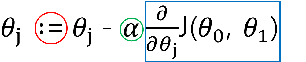 α (알파, 초록 원) - 학습률(Learning rate), 2차함수 그래프에서 경사를 타고 내려갈 정도를 정한다.