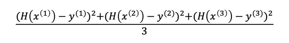 위 그래프의 평균 제곱 오차(MSE)를 계산해보면 예측값 H(x)에서 실제값 y를 뺀 후 제곱하여 데이터의 수인 3으로 나눈다.