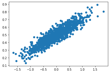 y1 = x1*0.2+0.5 + np.random.normal(0.0, 0.05)