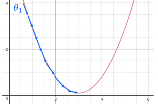 먼저 미분계수를 통하여 한 점의 기울기값을 구한다. 기울기 값이 양수라면 0에 가까워지기 위해서는 현재의 기울기에서 +값을 빼서 0에 가깝게 만든다. 또 기울기의 값이 음수라면 -값을 빼서 0에 가깝게 만들 수 있다.