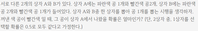 1) 상자 A를 선택할 확률 * 그 공이 빨간색일 확률
