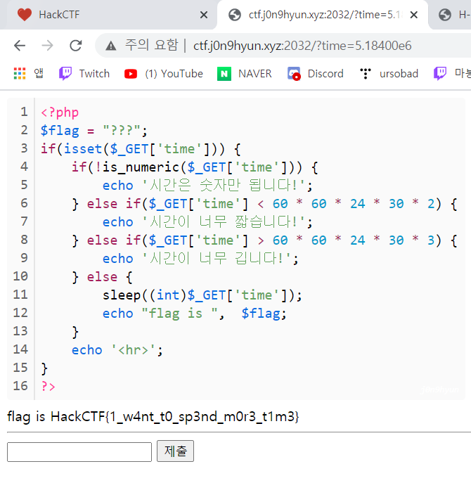 숫자를 입력하면 숫자인지 확인하고 5,184,000보다 크고 7,776,000 작은지 확인한 뒤에 그만큼의 시간을 기다린 후에 flag를 알려준다는 것 같다.